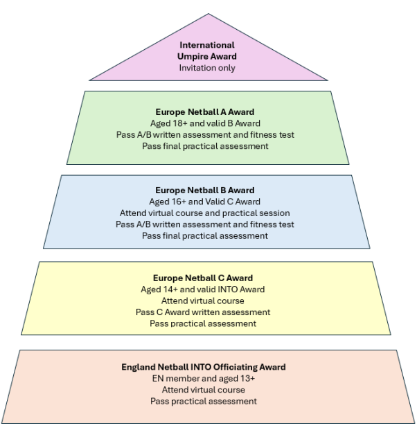 The England Netball Officiating Pathway allows officials to plot their own learner journey through a range of qualifications, helping them to fulfil their officiating potential at grassroots right up to elite international level.